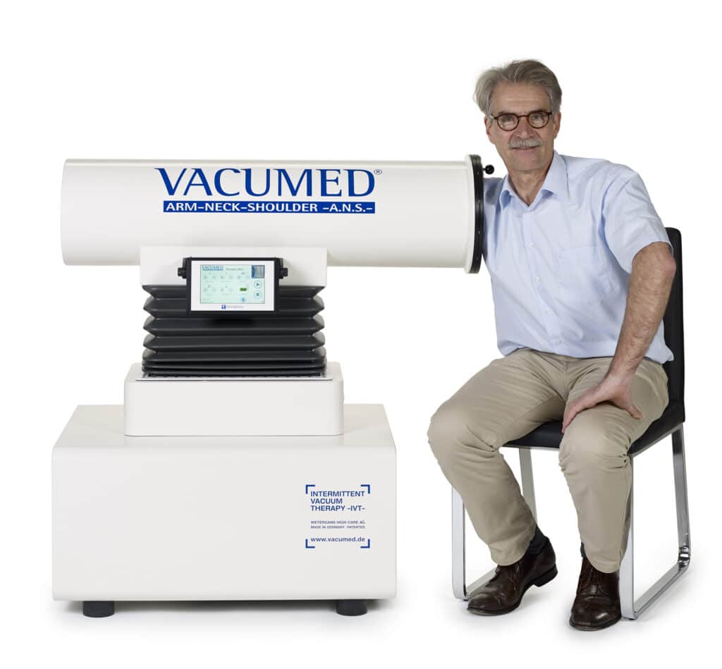 A Vacumed A.N.S. egy német fejlesztésű, orvostechnikai minősítéssel rendelkező vákuumterápiás készülék, amely a NASA technológiáján alapulva hozza el a modern regeneráció és keringésjavítás legfejlettebb formáját. A Weyergans High Care® Systems által kifejlesztett eszköz egyedülálló módon használ váltakozó vákuumhatást a felső végtagokon, ezzel támogatva a vér- és nyirokkeringést, a szöveti oxigénellátást, valamint az autonóm idegrendszer harmonizálását.